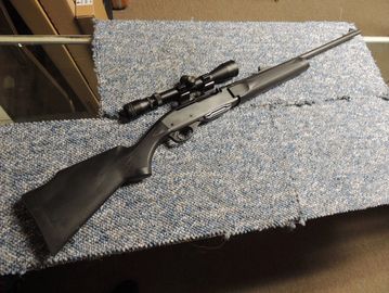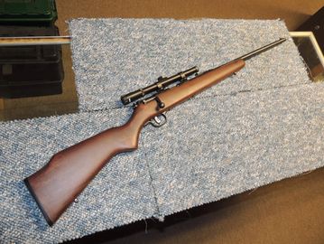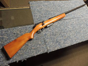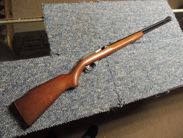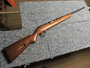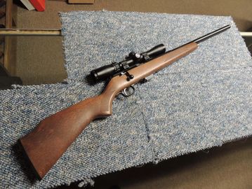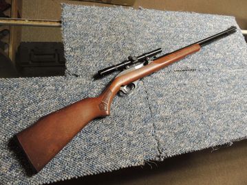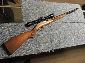 Marlin/Glenfield Model 60. A cheaper model made by Marlin for sale at Kmart or Walmart. Possibly the second most popular 22 rifle after the Ruger 10/22. Excellent beginner rifle and also a favorite of experienced shooters. This one has it's share of handling marks but seems to function fine. Comes with a Bushnell scope. 20240720