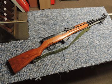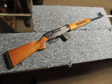 Norinco/PolyTech Hunter. AK style receiver. 7.62x39. 5 round mag. Not sure if it was made by Norinco or PolyTech. It's not marked on the receiver. 18" barrel. Nice bore. Clean but no stranger to the outdoors. Has some minor handling marks but it's not ugly. Some minor rust spots on the metal. 20250720