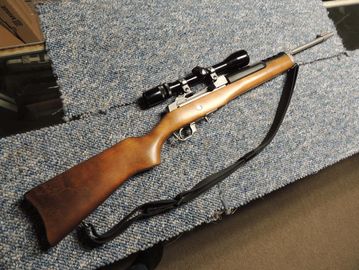 Ruger Ranch Rifle (Mini-14). 223 Remington. Semi Auto. Stainless. Nice shape. Nice bore. Comes with a Bushnell Scope Chief 4 3x-9x.
