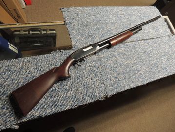1958 Winchester Model 12. 12GA. Pump Action. SN 1669xxx. Grandpa's shotgun. Nice bore. Nice patina. Some bluing loss. 28" barrel. Fixed Mod choke. 2 3/4" chamber. Seems to function fine. 20250419