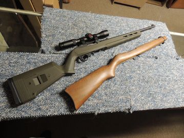 Ruger 10/22. 22LR. Standard model installed in a Magpul Hunter X-22 stock. Comes with original factory stock. Excellent condition. Few handling marks. Simmons scope. 20250720